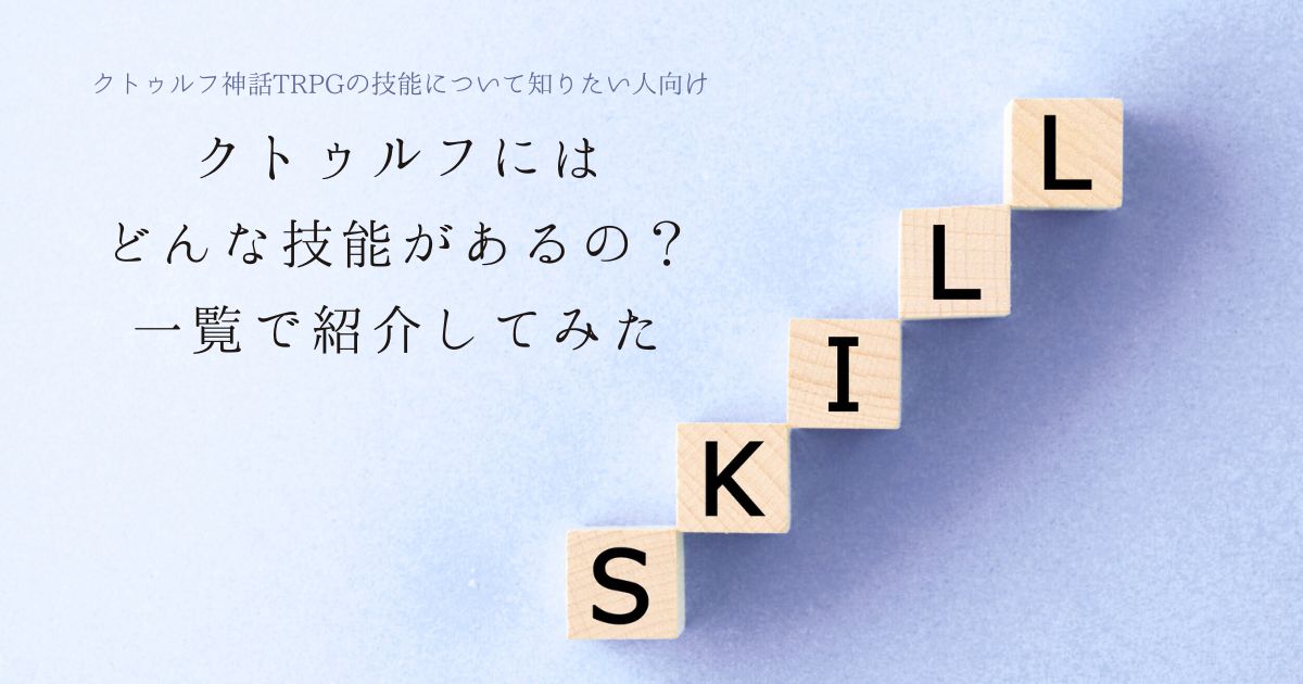 技能とは、クトゥルフ神話TRPGにおいて探索者が持つ知識や技術のことです。